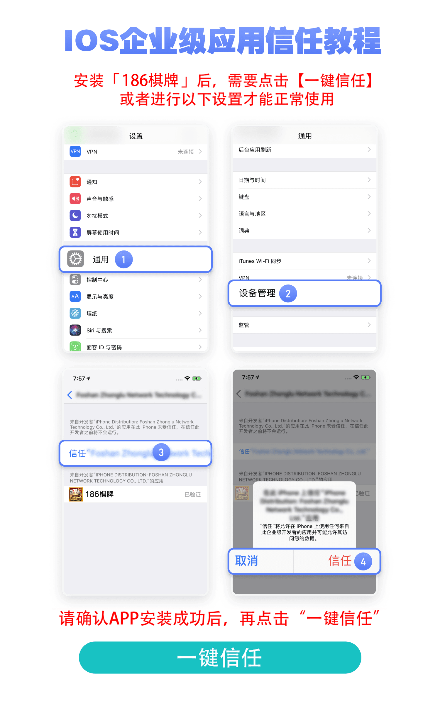 设置-通用-描述文件与设备管理(VPN与设备管理)移除